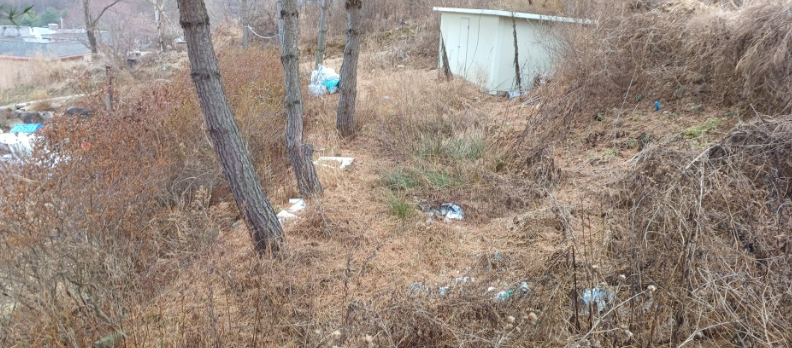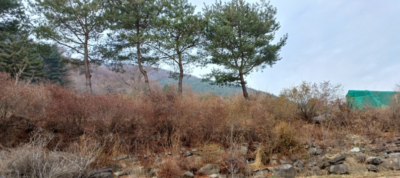 산자락에 위치한 부지라도 큰도로에서 부지까지 가파르지 않아 통행에 무리가 없어 보입니다.