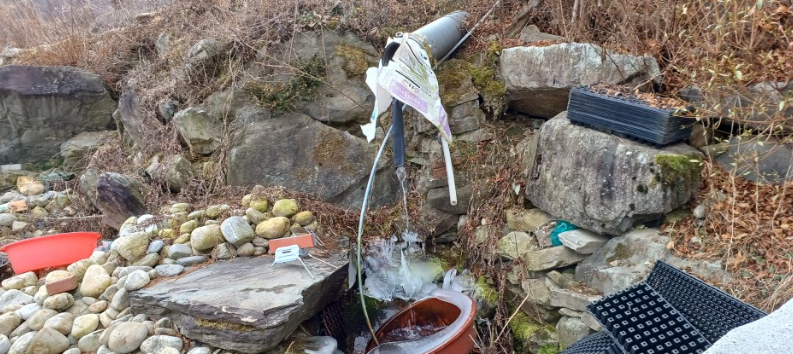 닭장과 산속 샘물이 사시사철 내려옵니다