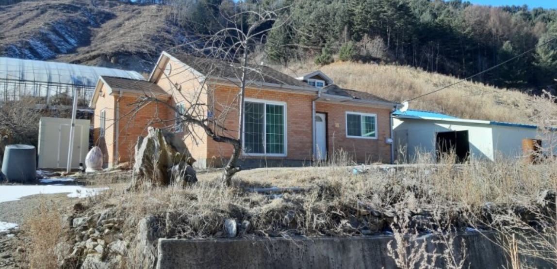 산골 끝자락 5-6가구 옹기종기 모여사는 시골마을 동향 부지위 창고형 농가 주택으로 1가구 2주택에 해당되지 않는 세컨드하우스 주말 전원주택 가능합니다.
