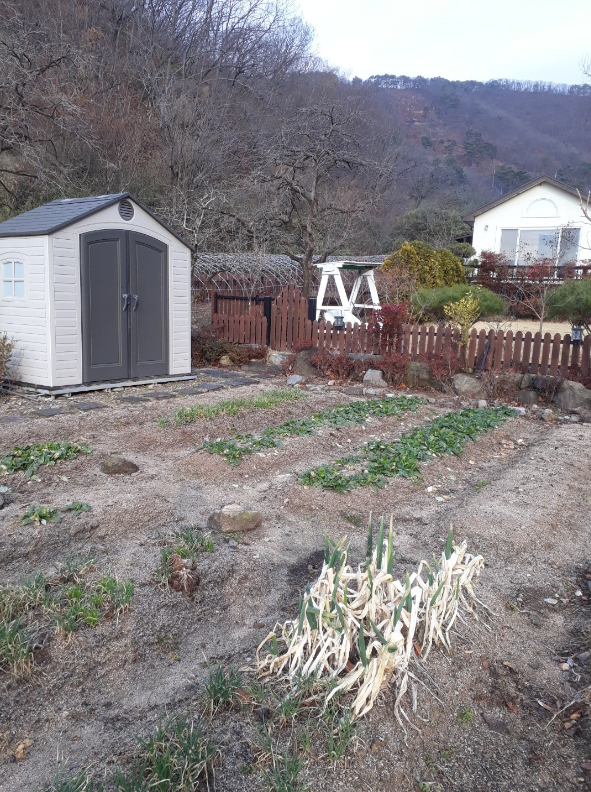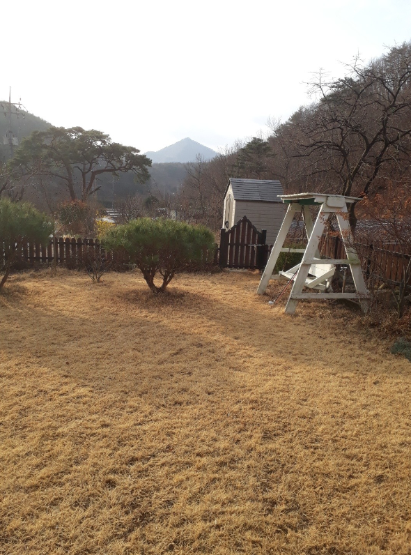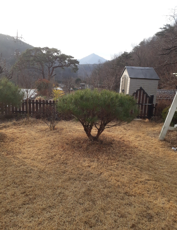 넓은 잔디마당과 텃밭(과실수), 기름보일러, 지하수(상수도)