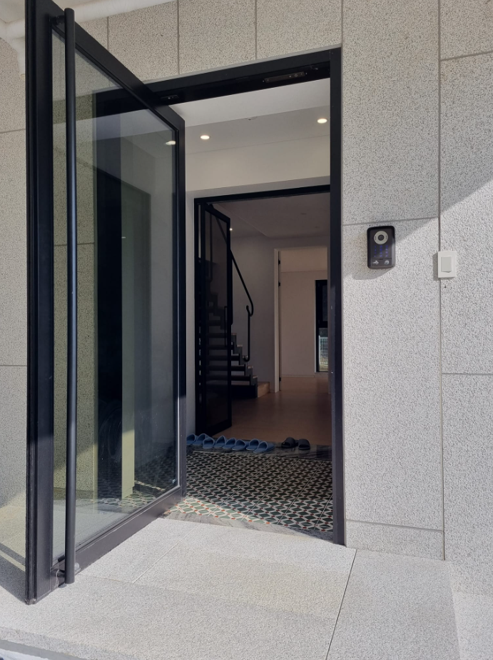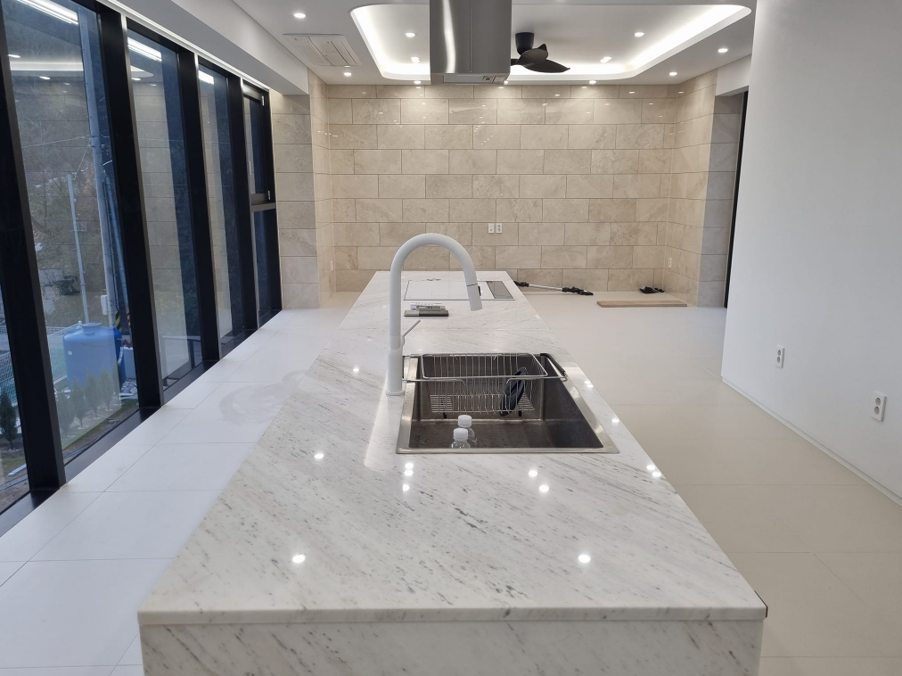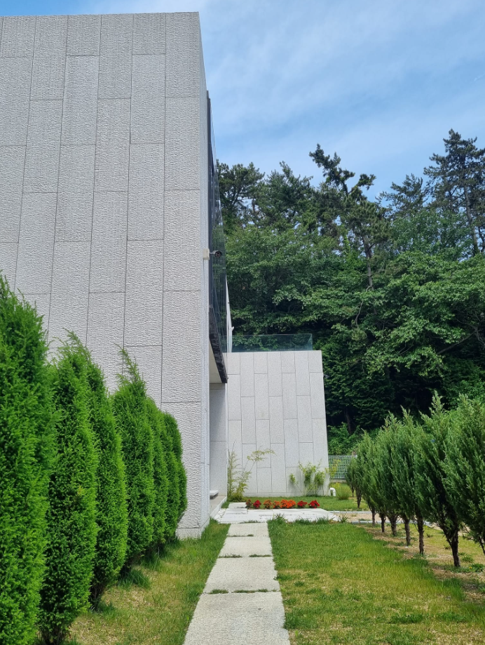 외부마감 화강석거친다듬. 내부 천연대리석, 도배,바닥 포세린타일 .정남향