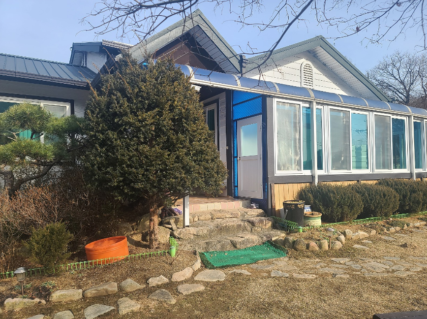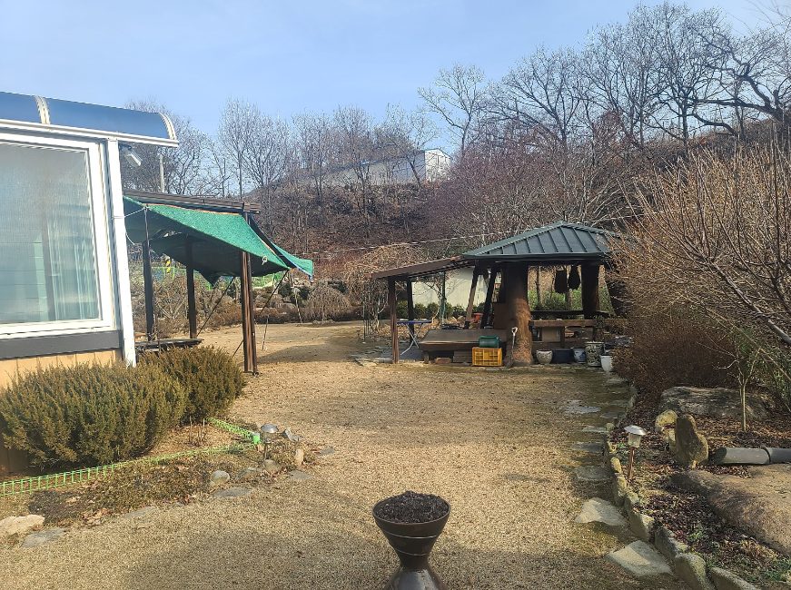 방 3, 욕실 2, 다용도실, 최근 내외부 인테리어 공사 진행, 차고지 별도(전기차 충전시설 설치되어 있음) / 주차 3대 가능 / 야외창고, 원두막, 별도 저장창고 또는 손님방으로 사용 가능한 시설 / 난방: 심야전기 / 태양열설치로 전기료 저렴 / 입주 후 10년 이상 계속 조경 및 인테리어 관리해 옴.