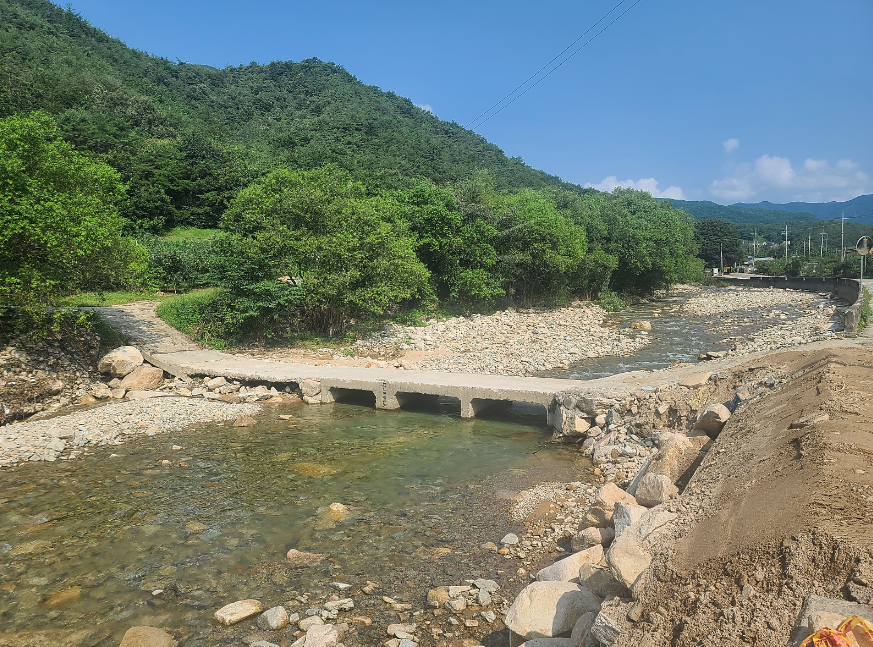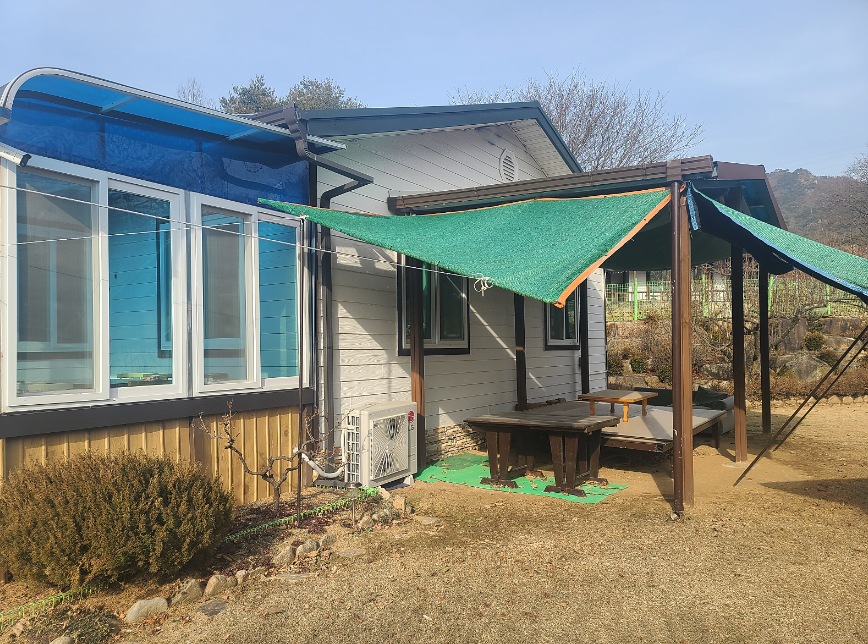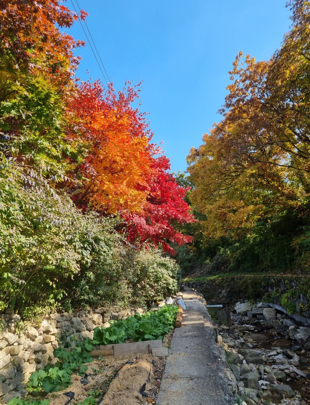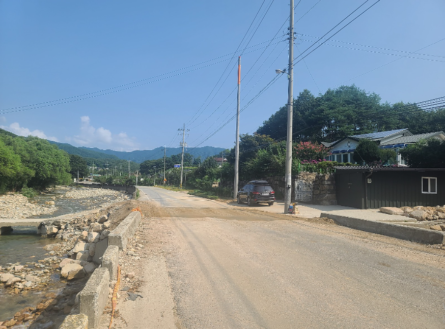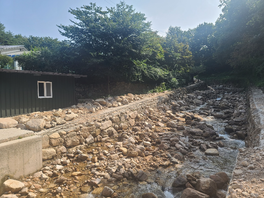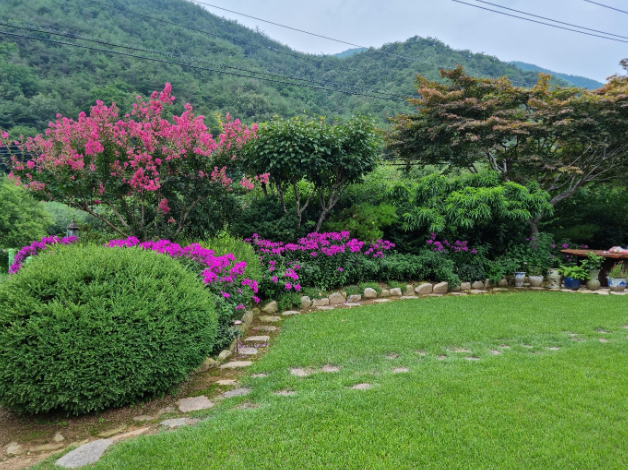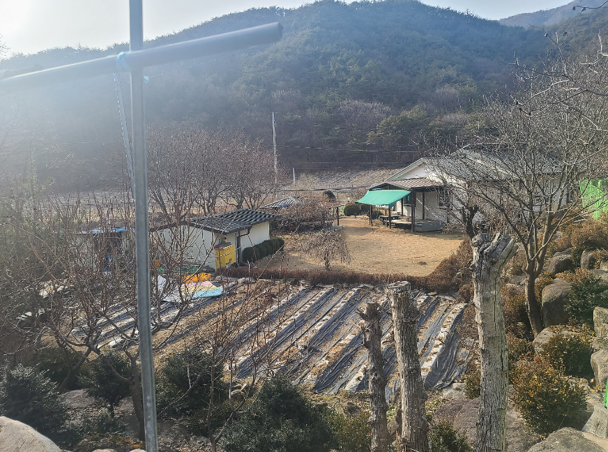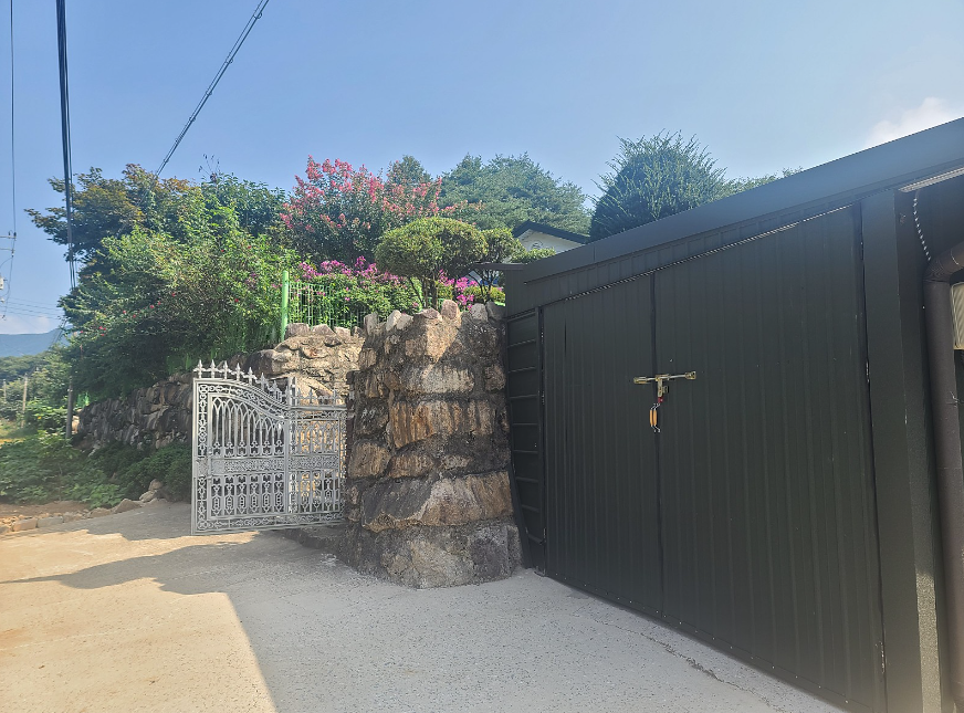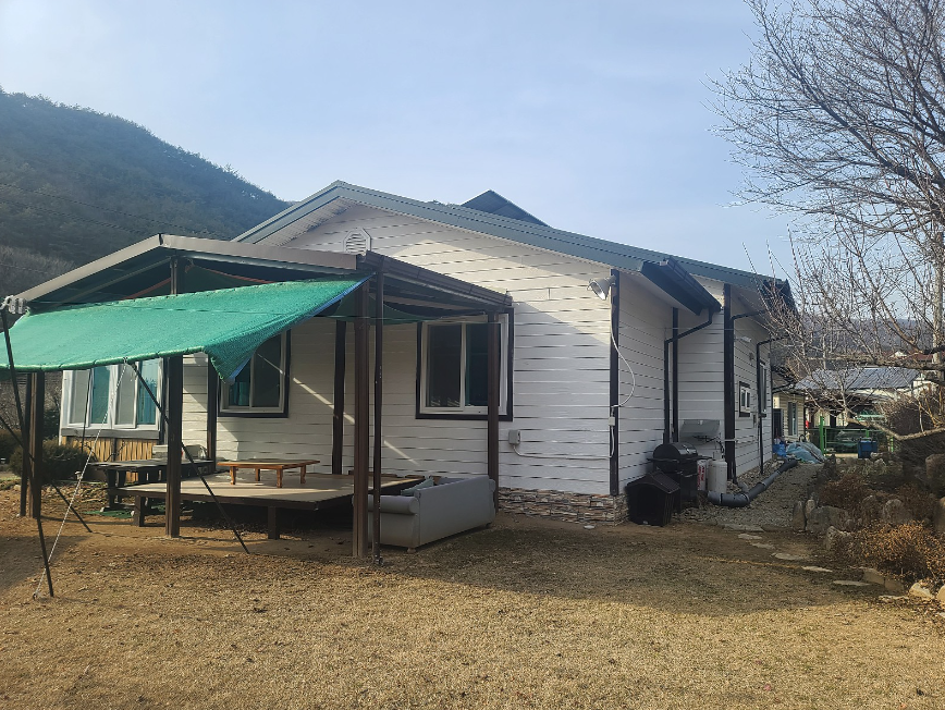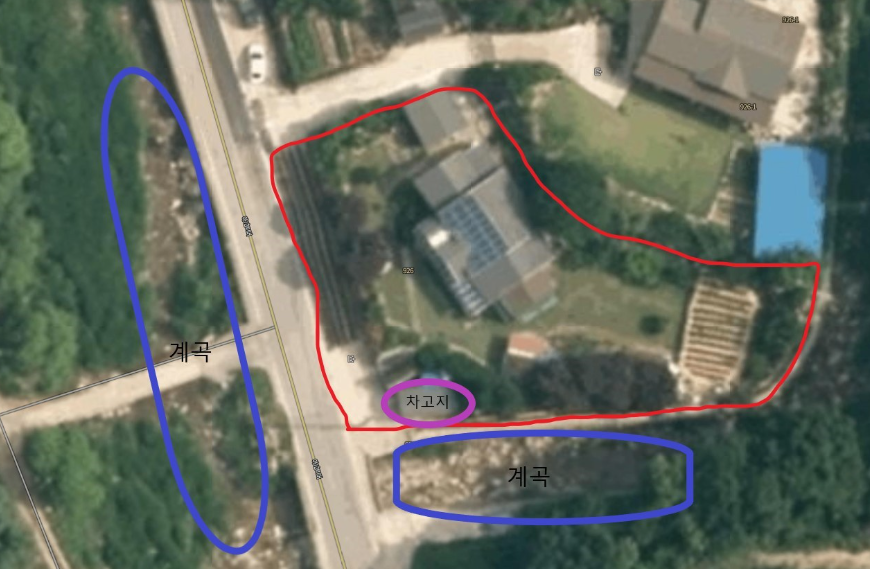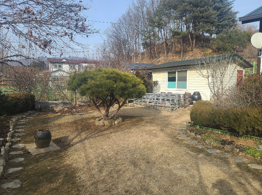 집 전경은 산과 계곡이 어우러져 있고, 옆면으로 산에서 내려오는 계곡이 형성되어 있어 사유지 계곡 같은 느낌이 있습니다.