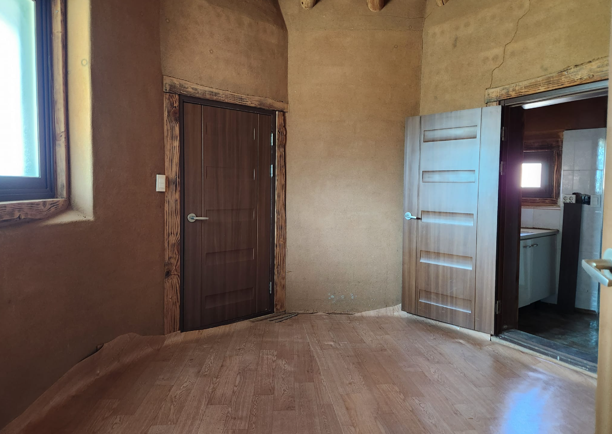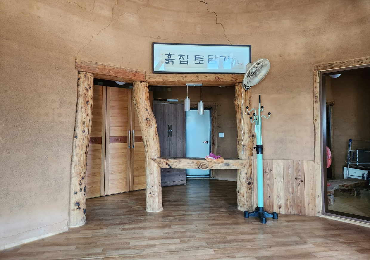흙집 , 건평 약 30평 방 4, 아궁이 사용하는 찜질방, 기름보일러 사용 넓은 거실
